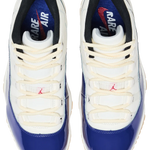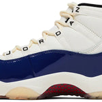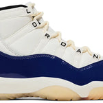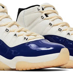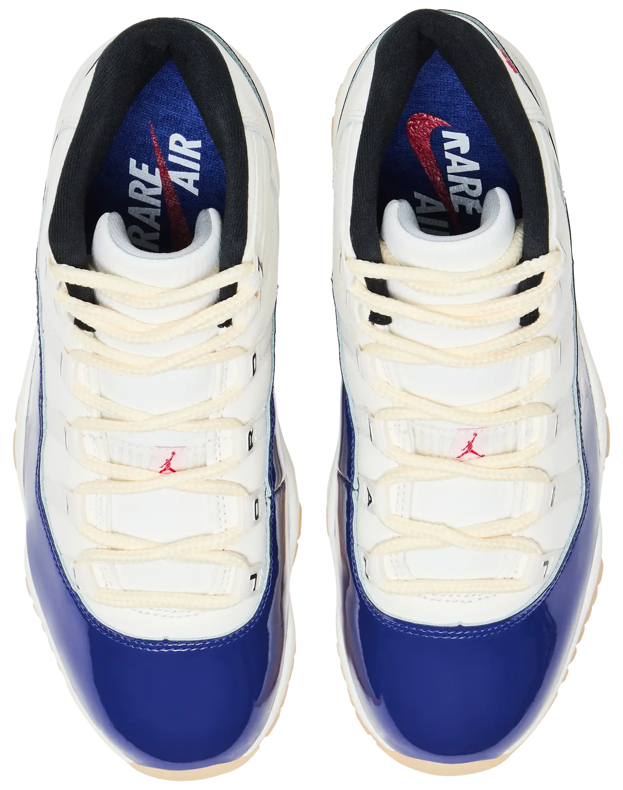 Las Air Jordan 11 Retro 'Rare Air' cuentan con una parte superior de cuero blanco con un guardabarros de charol brillante en Deep Royal Blue. Además de un logotipo de Jumpman carmesí en el cuello lateral, los elementos de la marca incluyen 'JORDAN' deletreado en los ojales de la correa y un estilizado '23' estampado en la pestaña trasera textil negra. La amortiguación ligera llega a través de una entresuela Phylon, equipada con amortiguación de suela de aire de longitud completa y soportada por una suela de goma translúcida.