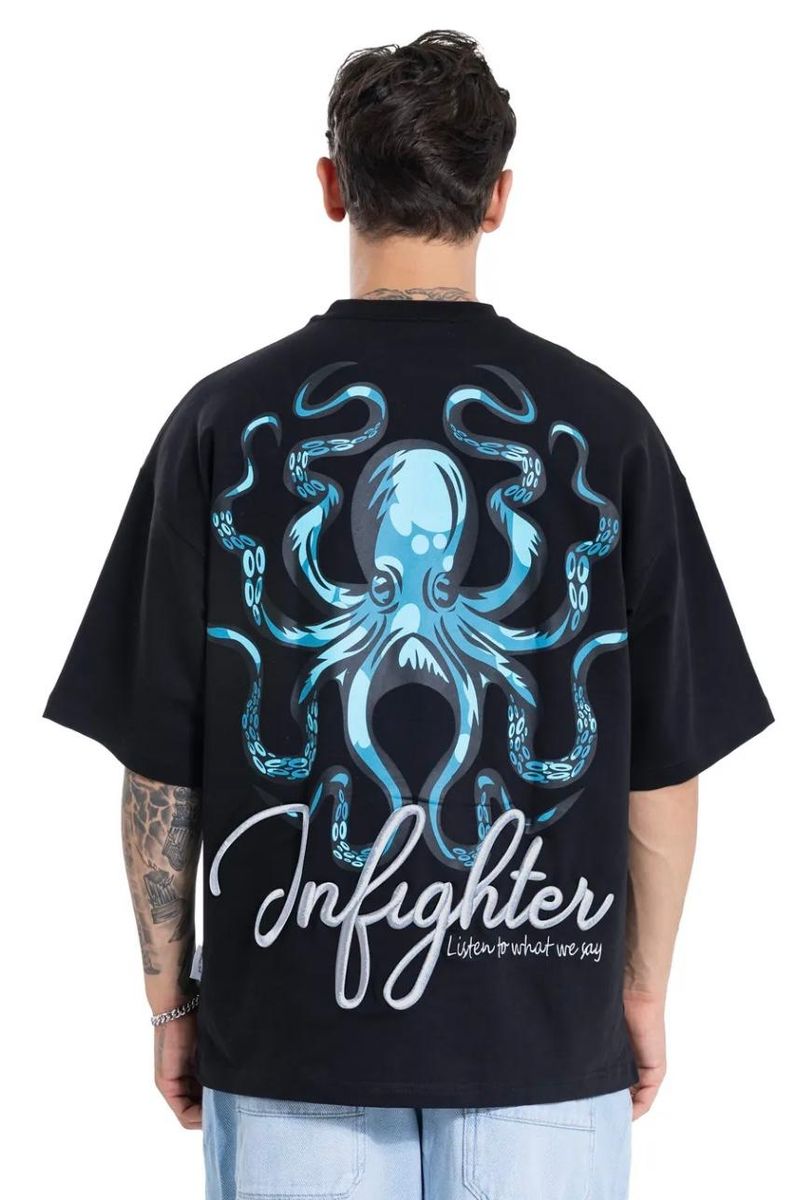 Camisa oversized en color negro, confeccionada en la mejor calidad . Presenta un diseño gráfico llamativo en ambas partes, ideal para un estilo moderno y urbano.