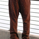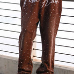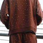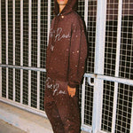 Este conjunto trae un hoddie Cropped, con detalles de pedrería, un bordado con el nombre de la marca, con dobladillo acanalado, cordones ajustables y bolsillo en la parte frontal. Los joggers hacen el match perfecto, con detalles en pedrería, bordados, cintura ajustabley bolsillos al frente y atrás.
