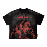 Camisa Boxfit de felpa con detalle en rhinestone, dobladillo de borde crudo y cuello acanalado.