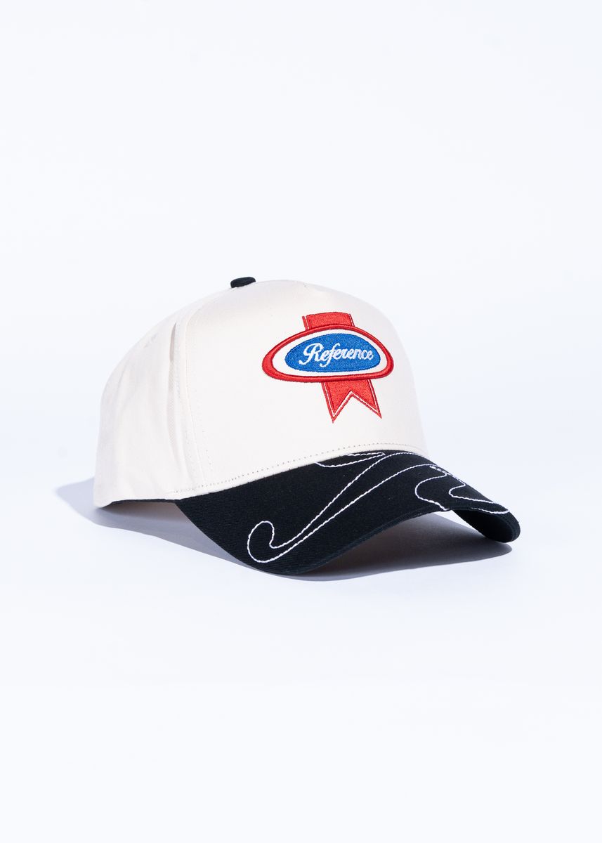 Esta gorra tipo snapback estructurada y totalmente ajustable destaca por su panel frontal sin costuras con refuerzo completo (buckram) y un vistoso bordado 3D al frente. Incluye el logo de serpiente infinita bordado en un lateral y el texto "REFERENCE" en hilo dorado arqueado en la parte trasera. Además, cuenta con visera con seis filas de costuras, interior con cintas personalizadas y un cierre trasero exclusivo de doble hilera con la "R", combinando diseño premium y detalles únicos.