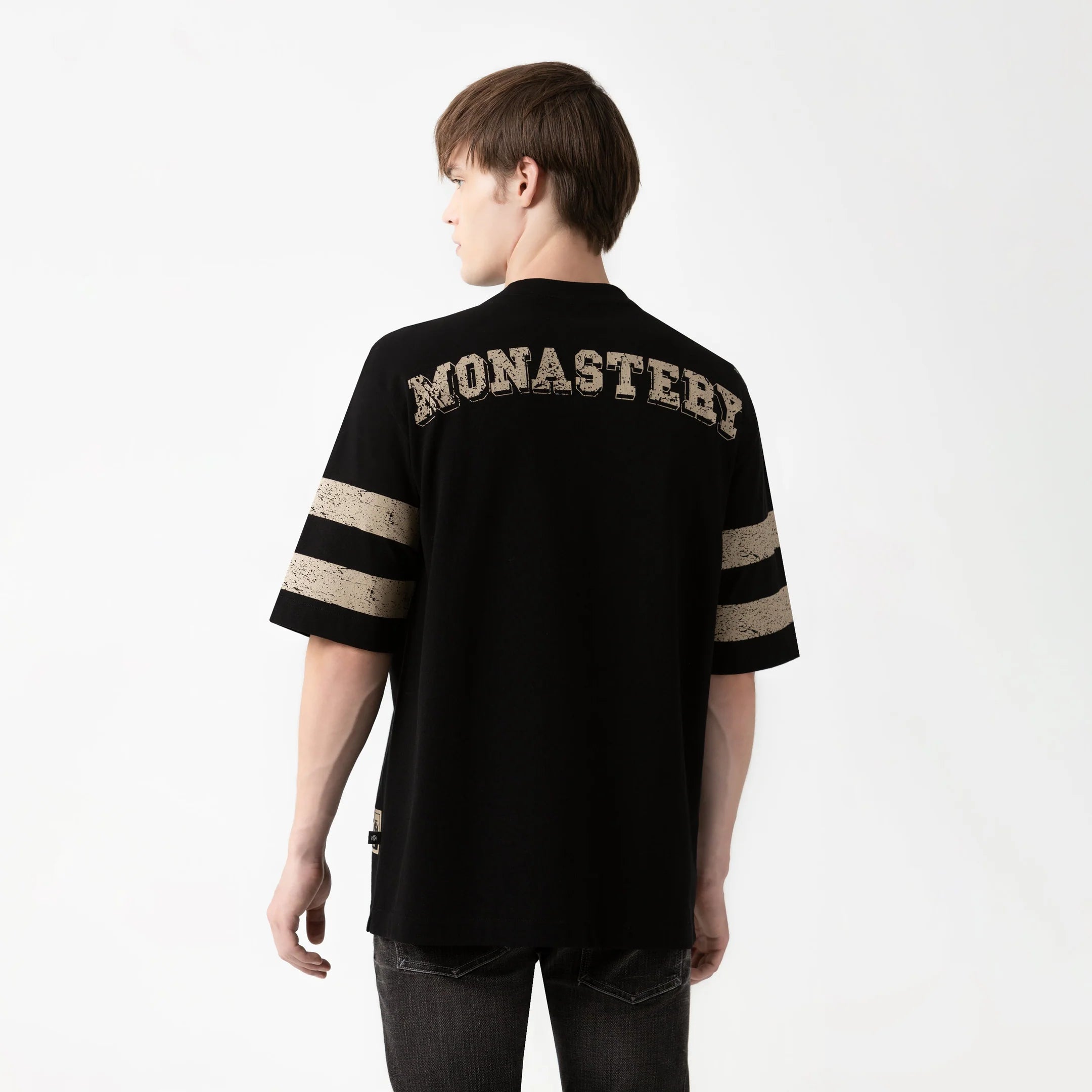 La Daven es una camiseta de gran tamaño hecha de tela Monastery 2, un algodón de alta calidad que combina suavidad y estructura para un ajuste contemporáneo.Su cuello acanalado añade definición y equilibrio al diseño, mientras que las impresiones con efecto de corrosión en la parte posterior, la parte delantera y las mangas crean un contraste visual audaz y distintivo. Una prenda segura y urbana diseñada para aquellos que expresan estilo y actitud a través de gráficos con personalidad.