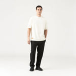Una camiseta de gran tamaño, esta pieza habla de fuerza contenida y movimiento interior. Confeccionada con tela Monastery 2, esta camiseta de silueta de gran tamaño ofrece cuerpo, presencia y una estructura pulida que se adapta al lenguaje contemporáneo del lujo masculino. En la parte delantera, una aplicación de PU, un elemento técnico, interrumpe la textura natural del algodón. En la parte posterior, un bordado simboliza la libertad, el dominio y la elegancia contenida, ejecutado con líneas definidas y un carácter escultórico. El cuello acanalado de 2,5 cm completa la prenda con un equilibrio sobrio. 7C es para el hombre que habita en la contradicción entre lo salvaje y lo controlado.