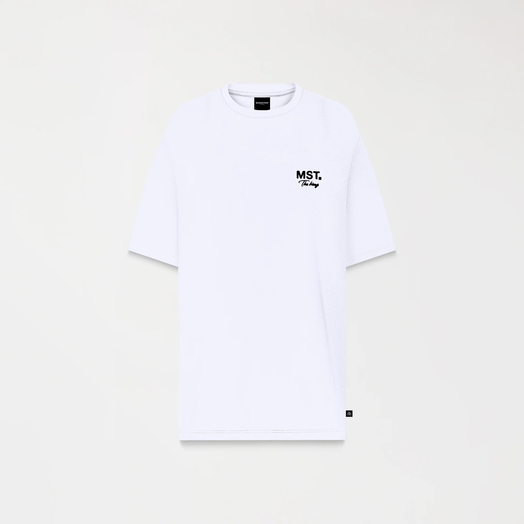 Carlier es una T-shirt de hombre, con nuestro logotipo MST en un patrón utilizando una técnica de rebaño. En la parte posterior, presenta una combinación de técnicas de flock y tejido plano, creando un arte inspirado en el rey que se reelabora para adaptarse a su nuevo mundo, convirtiéndose en una pieza única y fácilmente reconocible de nuestra marca. Hecho a mano en una silueta de gran tamaño en 100% algodón exclusivamente para Monastery.