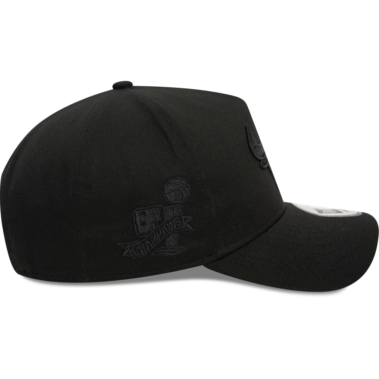 Gorra New Era 9FORTY AF de Los Chicago Bulls presenta un diseño monocromático de color negro con detalles en rojo con el logotipo de los Bulls en los paneles frontales, un parche conmemorativo al 6 campeonato bordado en el lado derecho y el flag de New Era bordado del lado izquierdo