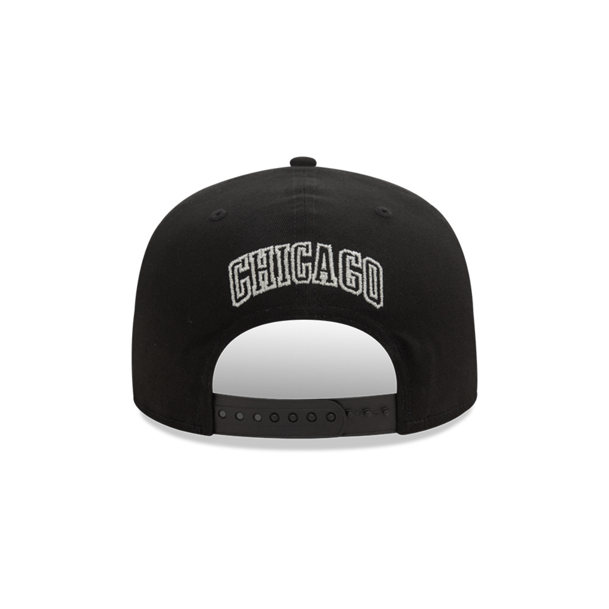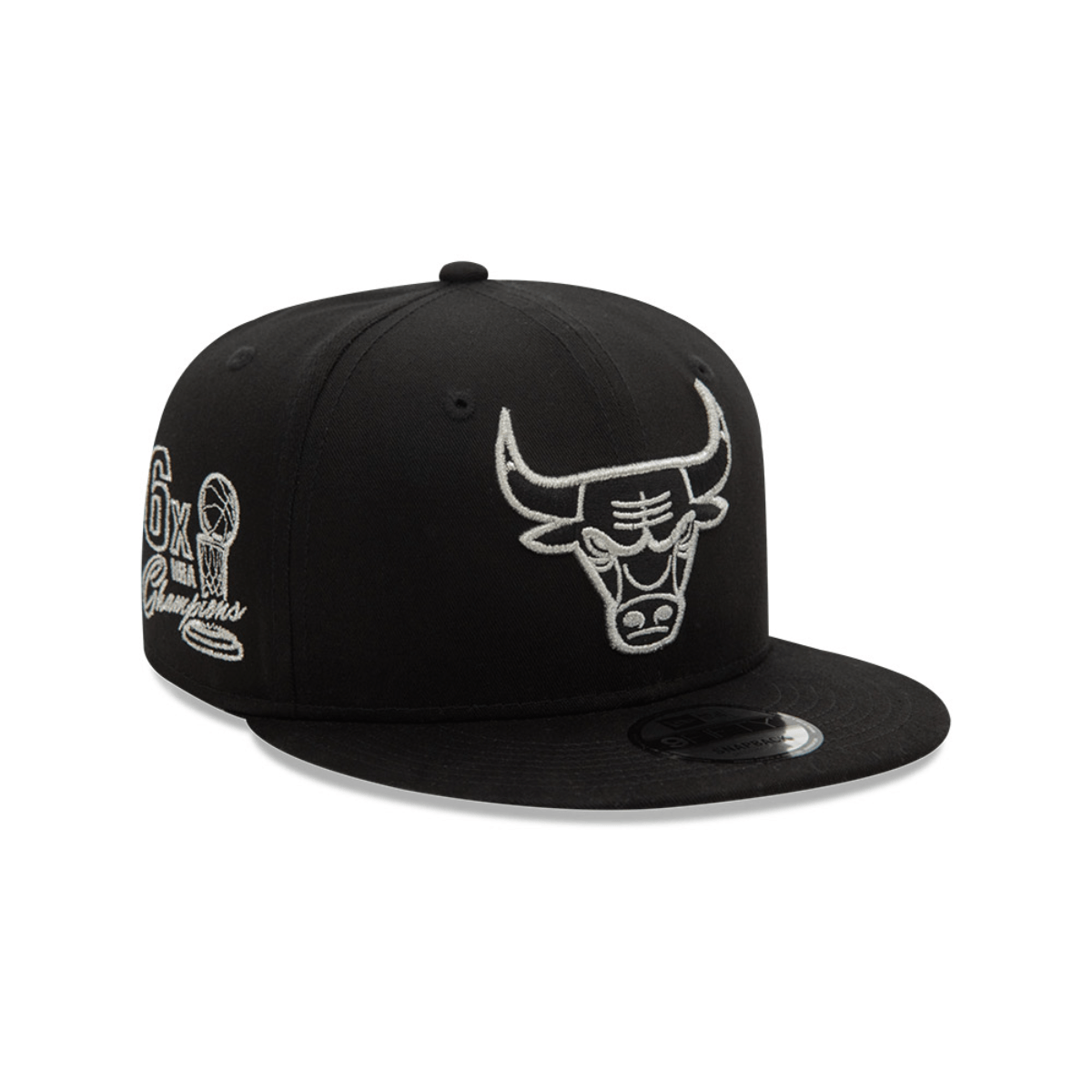 Esta gorra New Era 9FIFTY de Chicago Bulls de la coleccion,Metallic Outline, presenta un color negro , el logotipo de los Bulls con el contorno bordado en color metalico en los paneles frontales, bordado conmemorativo en el lado derecho ,nombre de la ciudad del equipo bordado en la parte trasera el flag de New Era bordado en el lado izquierdo.