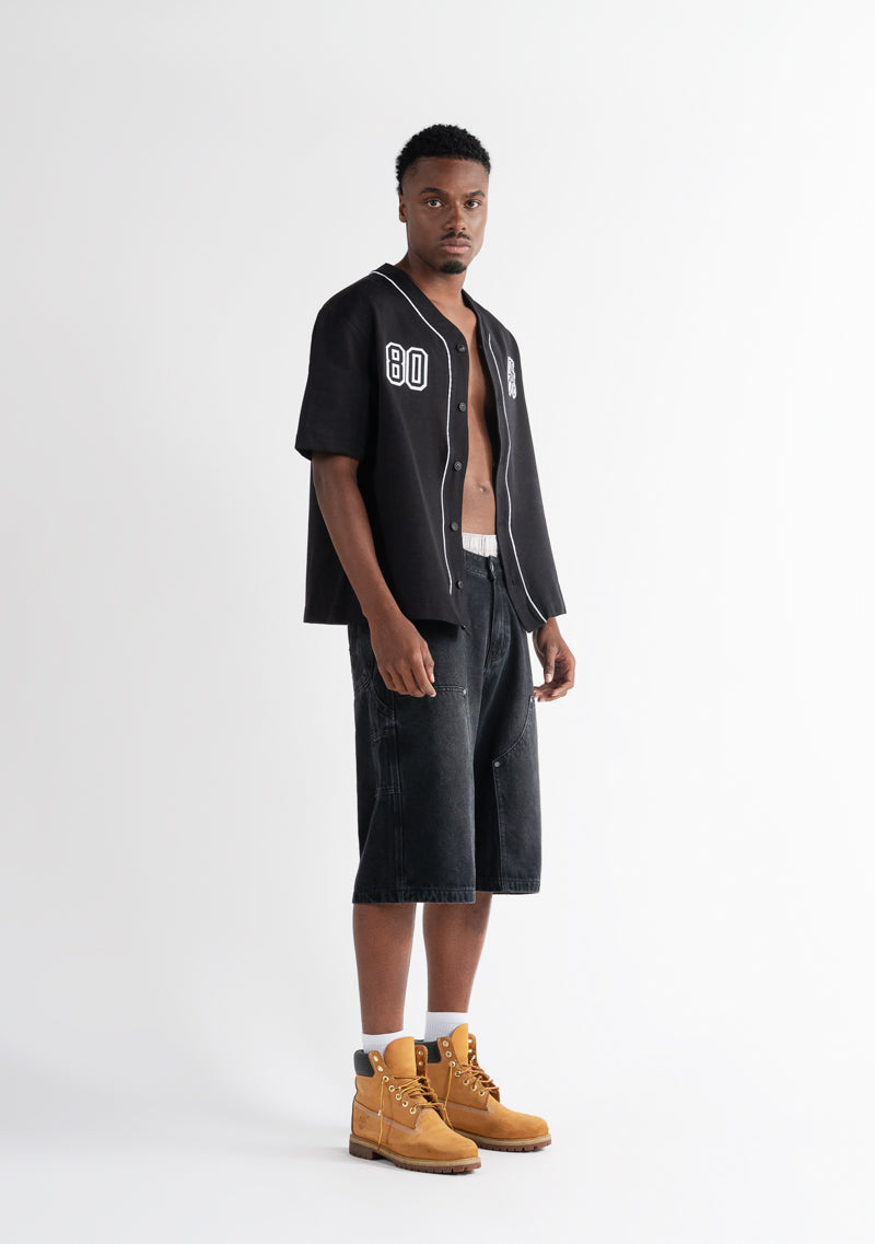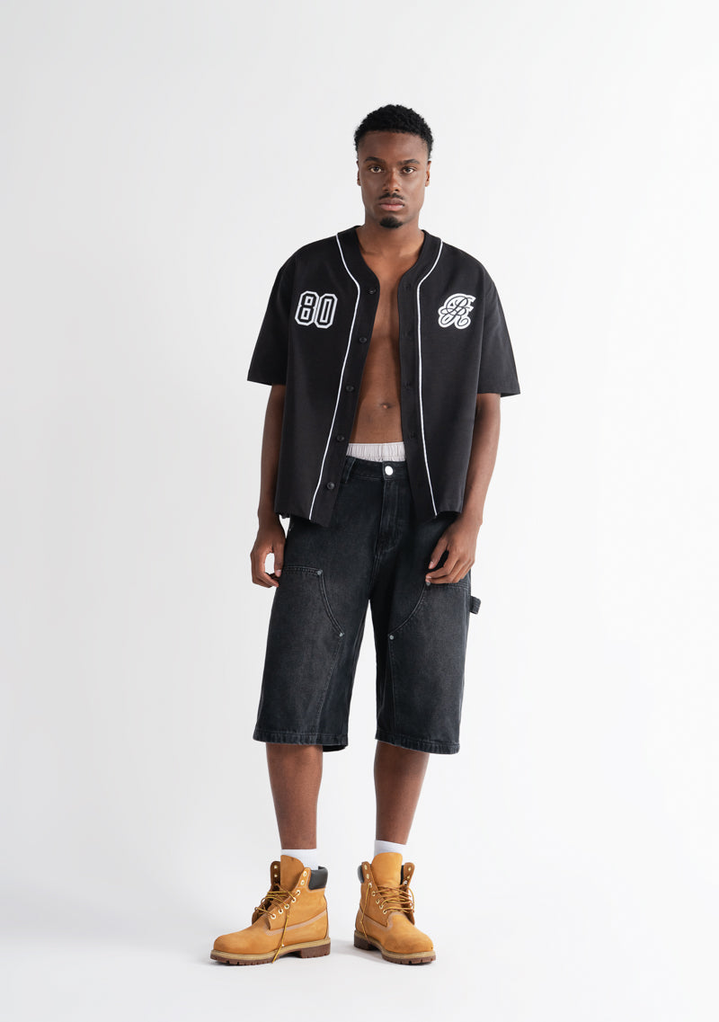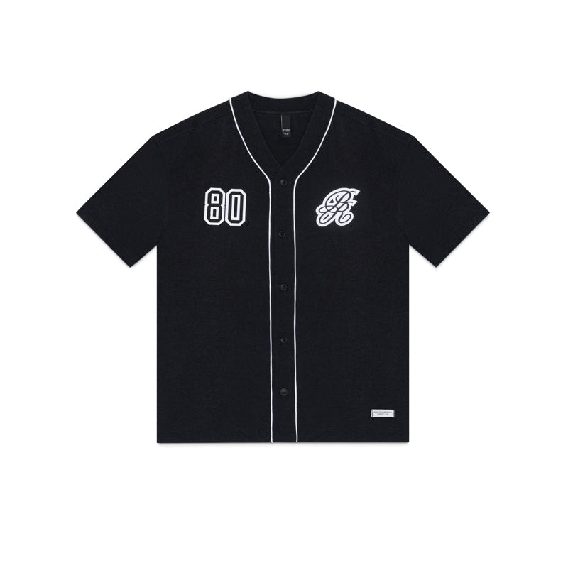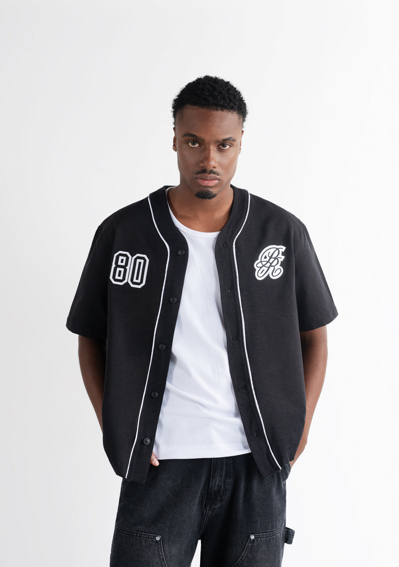 Camisa tipo béisbol en color negro con detalles en blanco y botones frontales. Presenta los bordados “80” y el logo de la marca en el pecho, además de un gran bordado “Pure Masterpiece” en la espalda. Su diseño clásico con toque urbano ofrece una combinación perfecta entre estilo deportivo y urbano.
