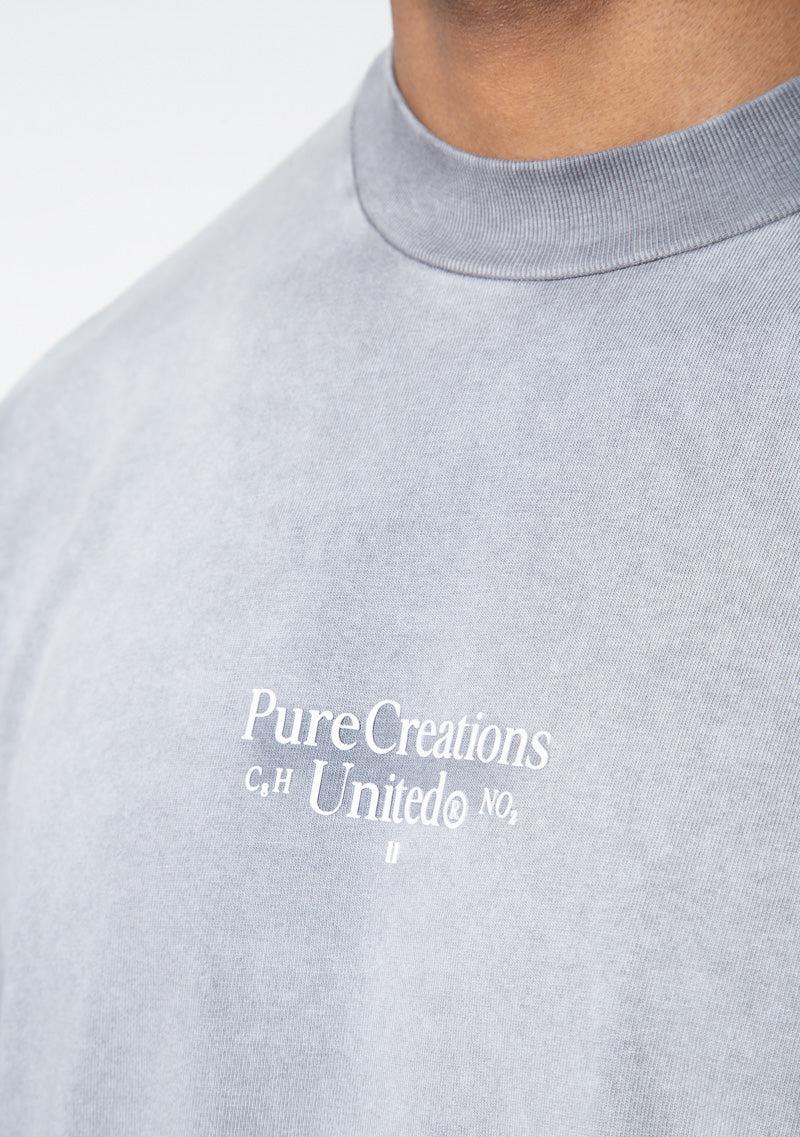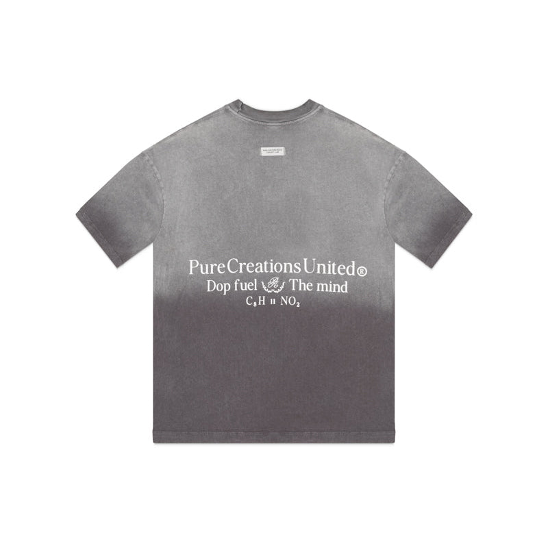 Camisa oversized de algodón premium con diseño en degradado gris y corte relajado. Presenta el texto “Pure Creations United” al frente y una gráfica conceptual en la parte posterior. Su estilo moderno y urbano la convierte en una pieza versátil y cómoda para cualquier ocasión