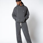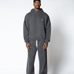 Sudadera tipo hoodie en tono gris oscuro, confeccionada en tejido suave de algodón con acabado desgastado que le otorga un estilo moderno y relajado. Presenta un ajuste holgado, capucha con cordones, bolsillo tipo canguro. Incluye un bordado discreto con el logotipo en el pecho, aportando un toque de distinción. Ideal para un look casual y versátil, perfecto para el uso diario o para complementar conjuntos urbanos con estilo contemporáneo.