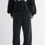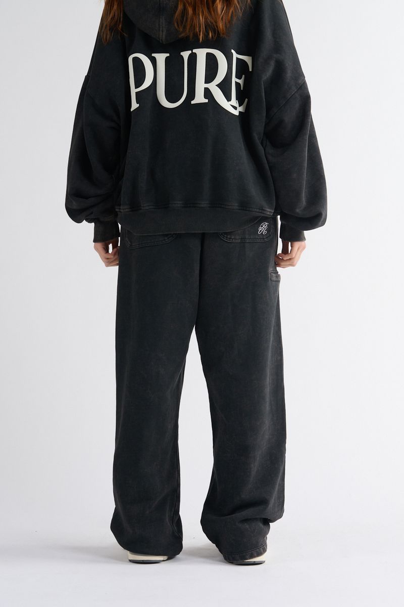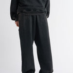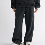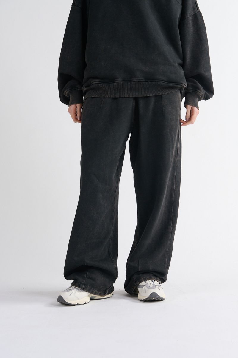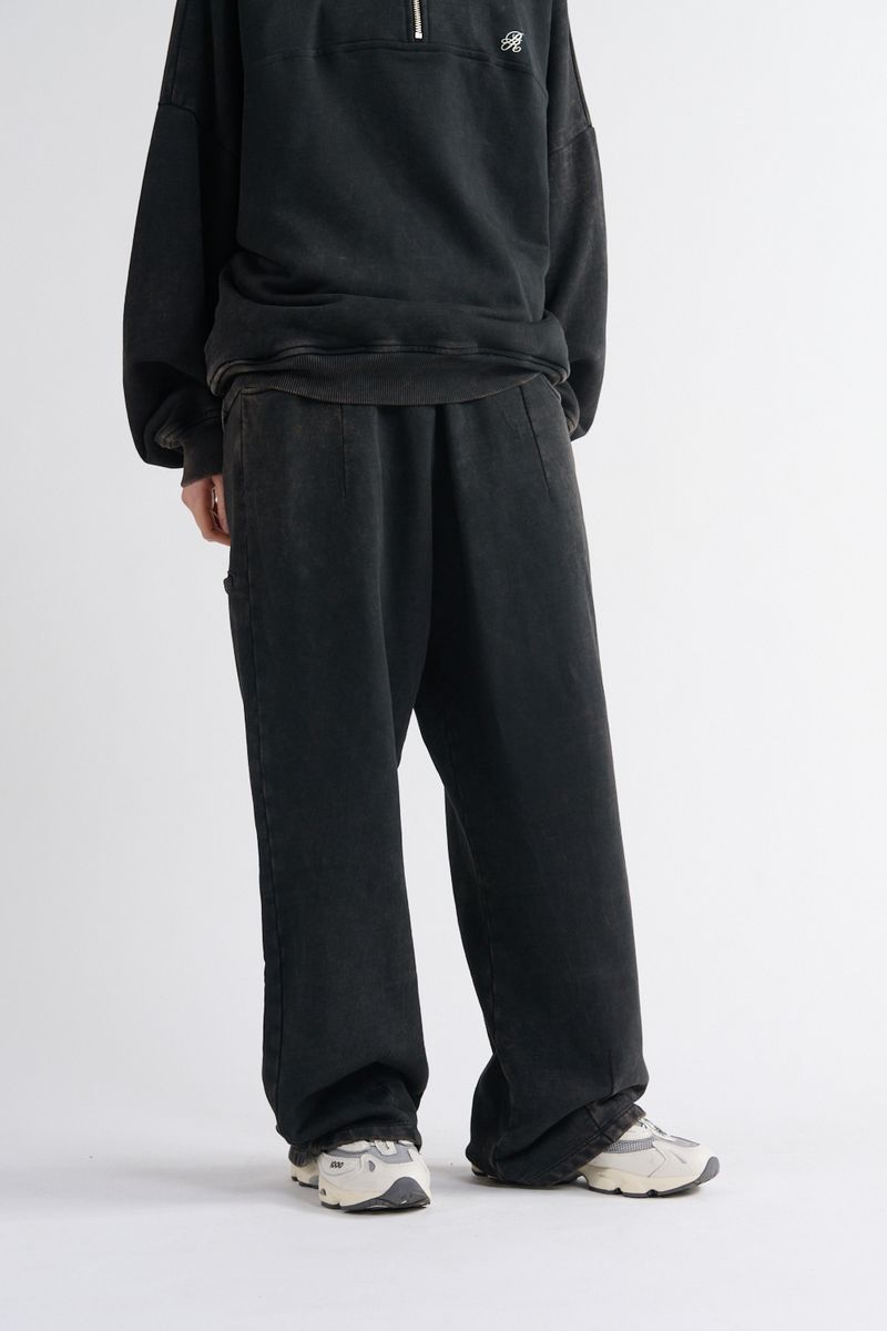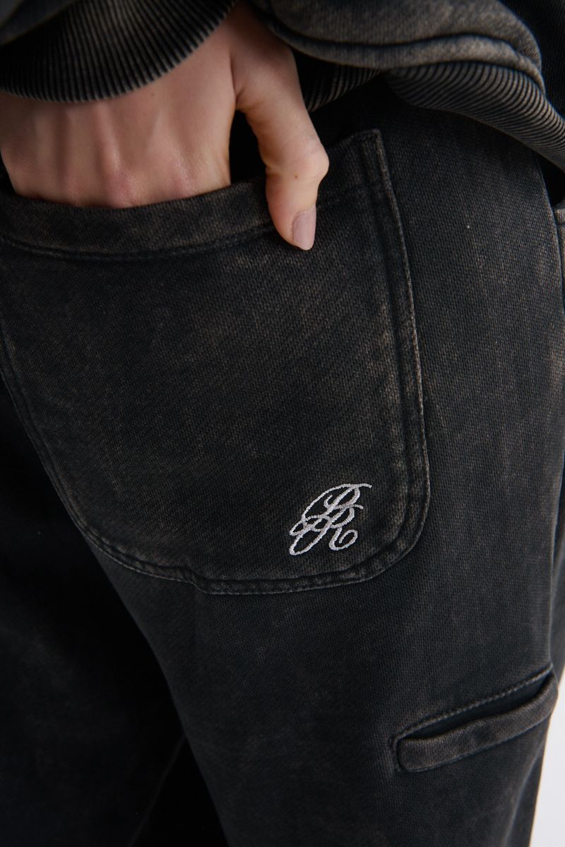 Pantalón en tono negro lavado con corte ancho y caída relajada. Su diseño de pernera extra amplia ofrece un look contemporáneo y cómodo, ideal para outfits urbanos de inspiración oversized. Confeccionado en un material de textura suave y aspecto vintage, incluye bolsillos funcionales y detalles sutiles como el pequeño bordado trasero que añade un toque distintivo. Una pieza versátil y estilo streetwear que combina comodidad con una estética moderna y equilibrada.